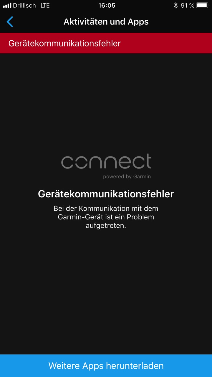 Weniger schön ist der Bereich der sich mit der Konfiguration der Uhr beschäftigt. Ruft man ihn auf, dann kommt es öfters vor das sich die App einen Wolf synchronisiert ohne das etwas passiert. Ich weiß mir dann auch nicht zu helfen und beende die App und starte alles neu. Manchmal kommt auch gar keine Verbindung zustande obwohl die App vorher eine aktive Verbindung angezeigt hat. Alles sehr seltsam. Das sind zwei Bildschirme die mir relativ häufig begegnet sind: