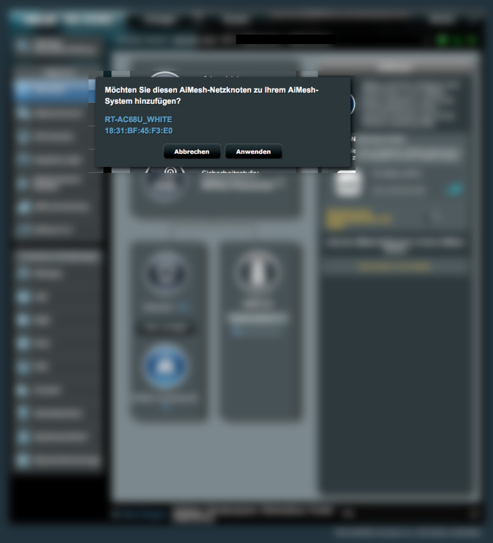 Anschließend startet man beide Geräte neu. Beim Basisrouter ist nun eine neue AiMesh-Option zu sehen: