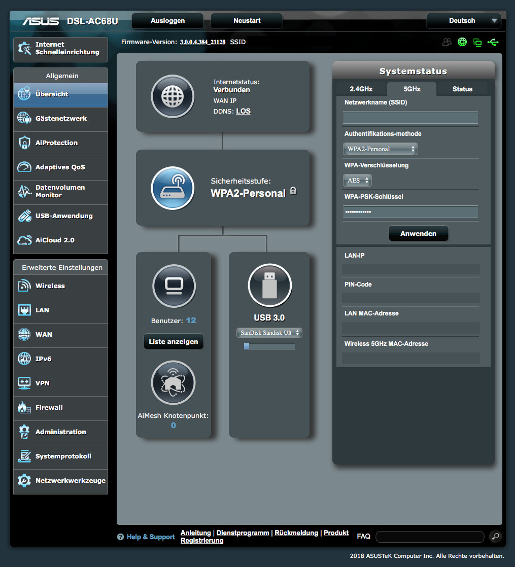 Mit AiMesh bietet Asus nun auch eine Möglichkeit integrierte DSL-Lösungen mit Meshtechnologie zu verwenden. Ich meinem Fall verwende als Basisgerät einen Asus DSL-AC68U als primären Router und DSL-Modem. Diesen haben ich jetzt einen normalen Router RT-AC68U (ohne Modem) zur Seite gestellt um AiMesh-Netz aufzubauen.