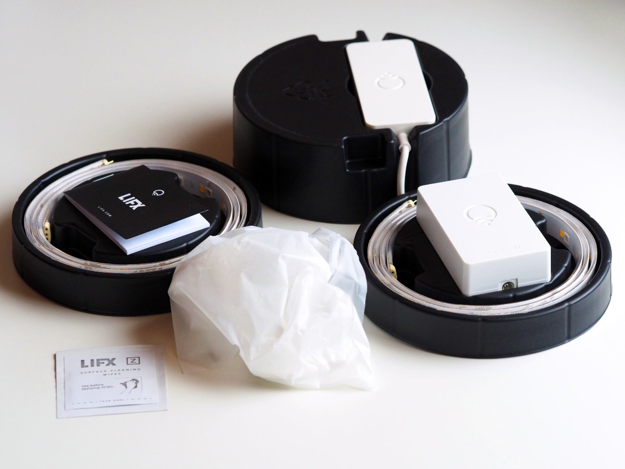 Der LIFX Z kommt in einer ausgesprochen hübschen Verpackung daher. Der Lieferumfang des Starterkits sieht folgt aus: