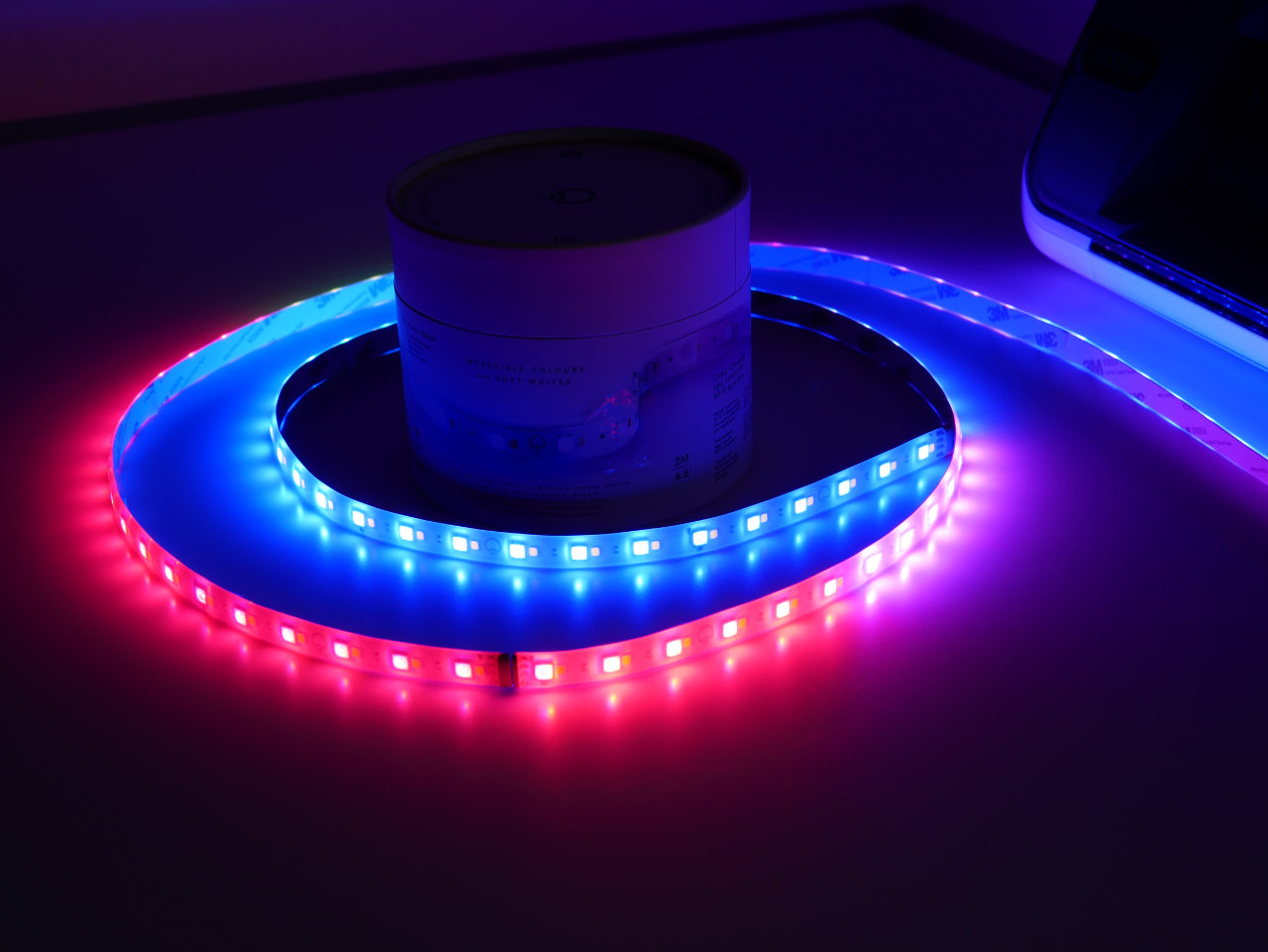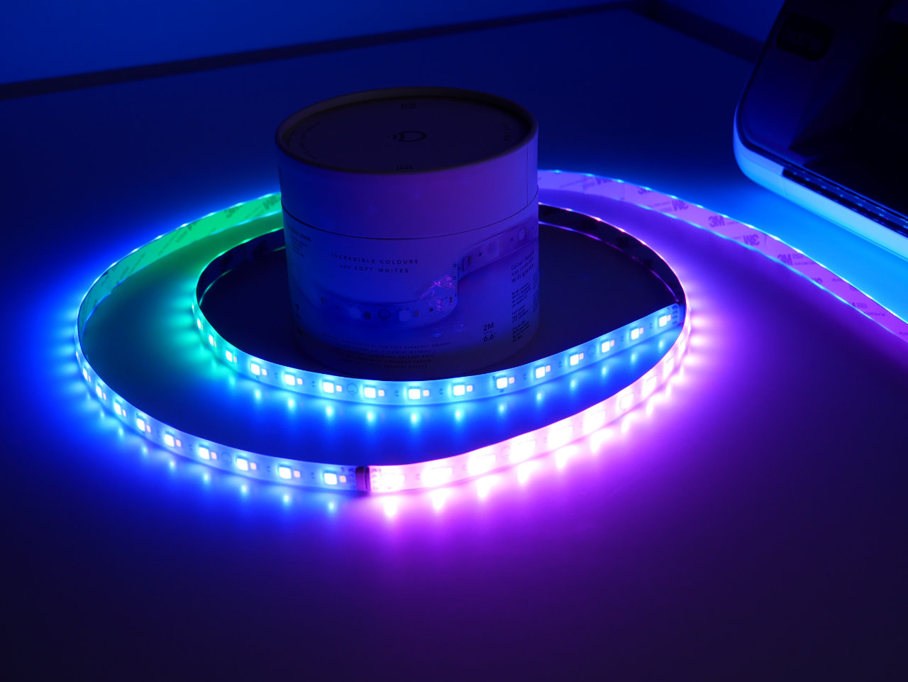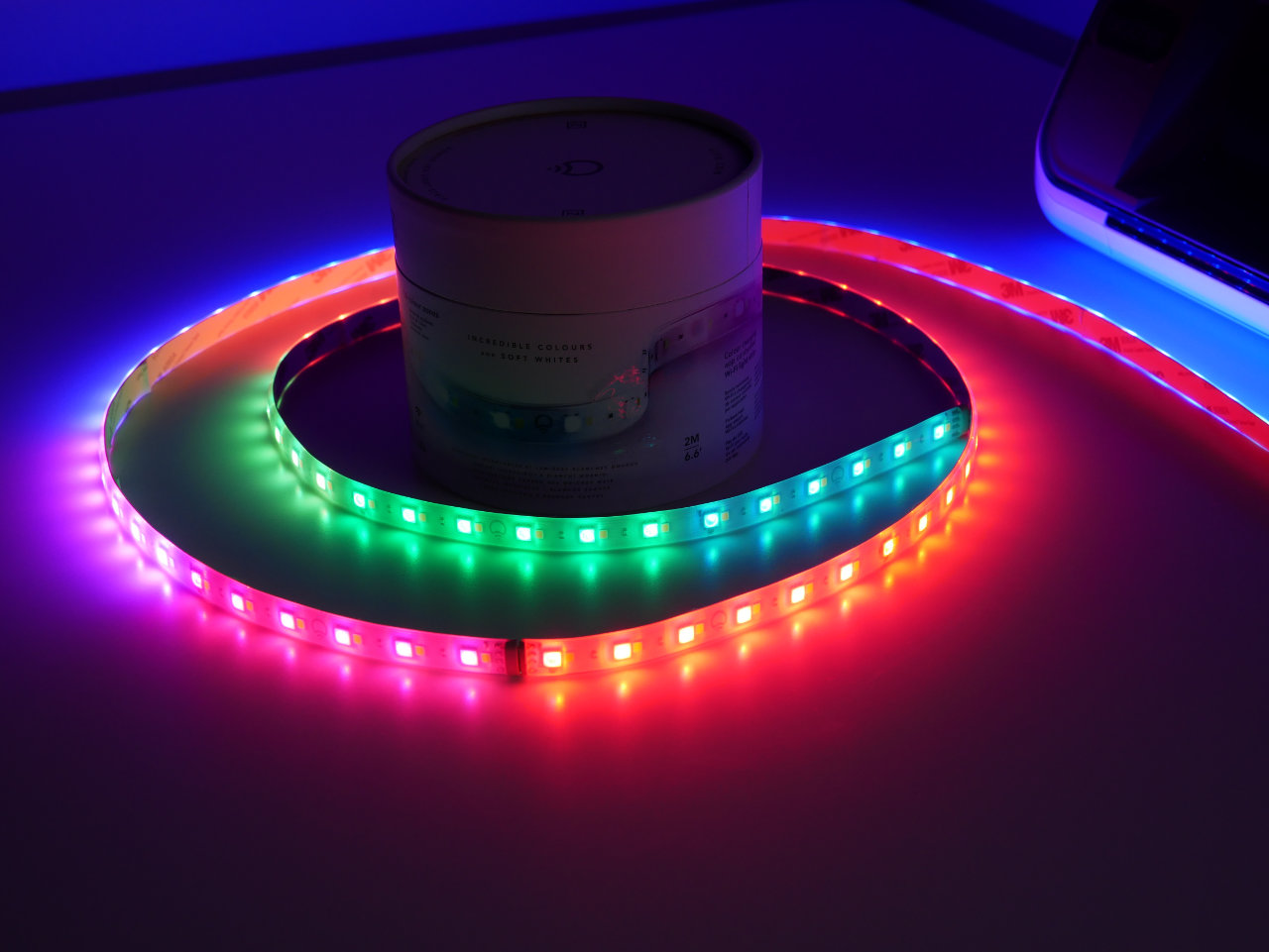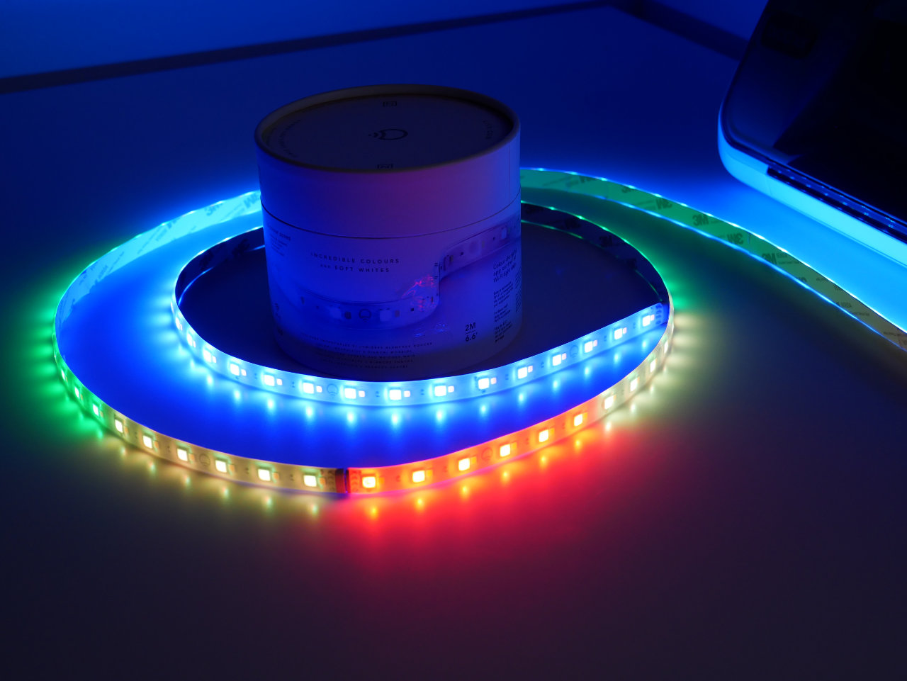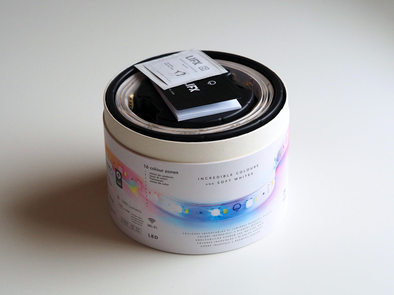 Darüber hinaus handelt es sich bei dem LIFX Z um einen RGBW-Strip, Weiß wird hier mit separaten LEDs erzeugt und nicht aus Rot, Grün und Blau gemischt. Bei günstigen LED-Strips aus den Baumarkt usw. fehlen die zusätzlichen weißen LEDs.