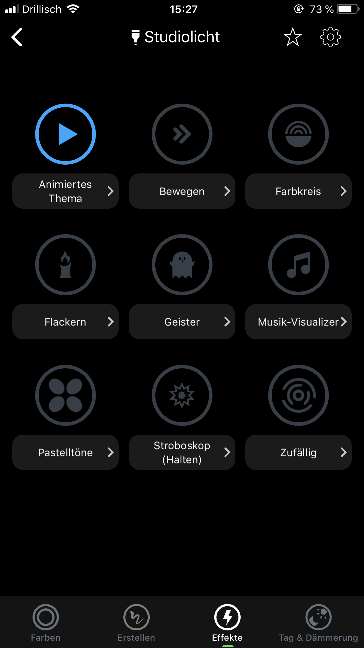 Zum Einsatz kommen folgende Versionen: Firmware Lightstrip: v2.77 und App für iOS v3.42. Die Standardfunktionen anderer smarten Beleuchtungen findet man auch in dieser App wieder. Man kann Farben ändern, die Helligkeit einstellen, Zeitpläne definieren. Lampen lassen sich Räumen zuteilen und in Szenen arrangieren. Die App bietet aktuell 16 vordefinierte Themen die verschiedene Farbeinstellungen mitbringen. Eigene Themen lassen sich nicht erstellen.