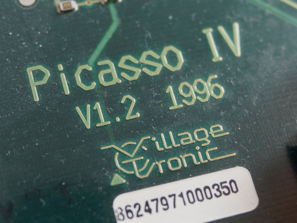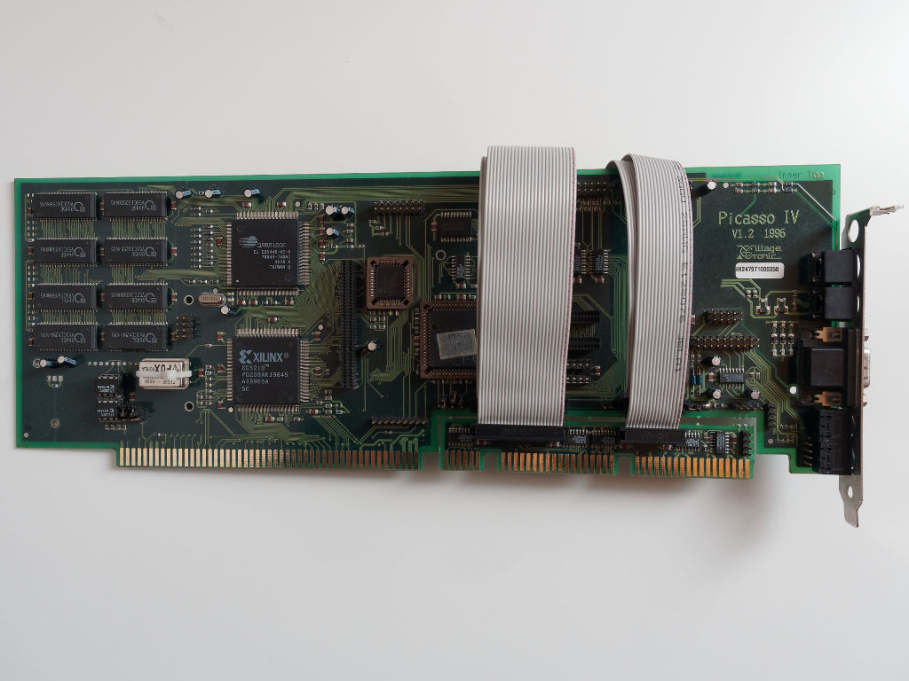 Hier kommt eine Picasso IV von Village Tronic mit 4 MB Ram zum Einsatz. Sie gehörte damals zu den schnellsten Grafikkarten für den Amiga, wenn sie nicht sogar die schnellste war. Mit ihr lassen sich problemlos Auflösungen von 1024x768 in 24 Bit Farbtiefe darstellen. Eine Nummer größer, 1280x1024 ist dann aber nur noch in 8 Bit möglich, zumindest wenn es augenfreundlich sein soll.