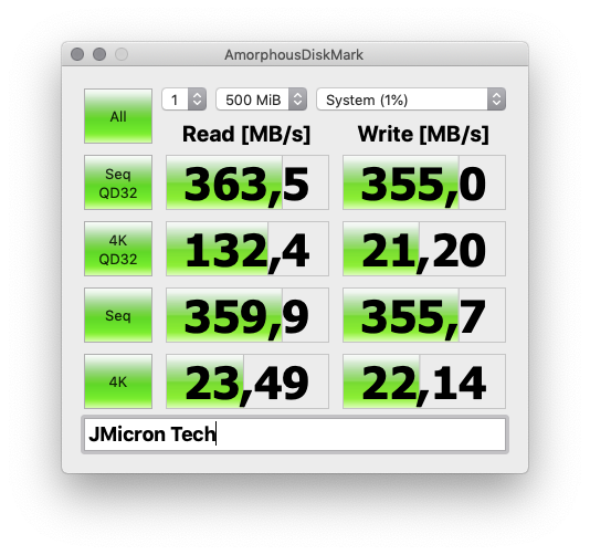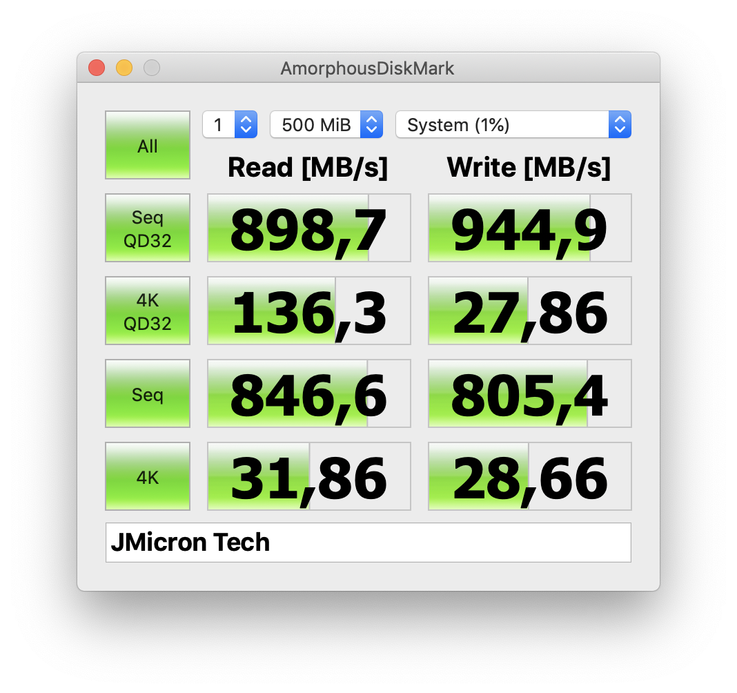 Das Duo FIDECO Gehäuse und WD Black SN750 ist übrigens absolut Geräuschfrei, auch unter Dauerlast. Von der Samsung 960 EVO kann ich das nicht unbedingt sagen, die macht unter Last, in meinem Mac Pro, seltsame Quietschgeräusche die doch hin und wieder ziemlich nervig sind. Das ist mir bei einer anderem Samsung SSD (EVO 840) auch schon aufgefallen, die erzeugte unter Last ein leises, hochfrequentes Fiepen. Das sind auch die Gründe warum ich keine SSDs von Samsung mehr kaufe.