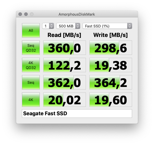 Sucht man nach einer externen Lösung für USB 3.1 so kann ich FastSSD von Seagate nicht empfehlen, bzw. generell Lösungen die noch auf SATA-Laufwerke setzen. Hier erreicht man mit selbst gebauten Lösungen (siehe mein Artikel über das Gehäuse von FIDECO) eine wesentlich höhere Leistung ohne das man wirklich viel mehr bezahlen muss.