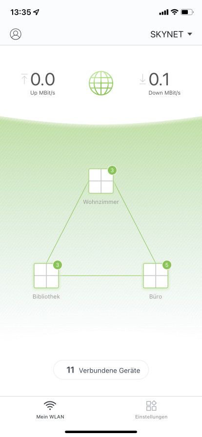 Darüber hinaus kann man sich ansehen welche Geräte mit welchem Knoten verbunden sind und welche Bandbreite aktuell beim Up- oder Downstream verwendet wird. Viel mehr gibt die App nicht her. Dinge wie die Verschlüsselung lassen sich nicht einstellen und mehr als WPA2 wird aktuell nicht unterstützt.