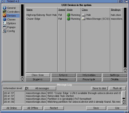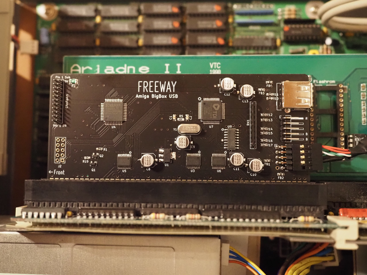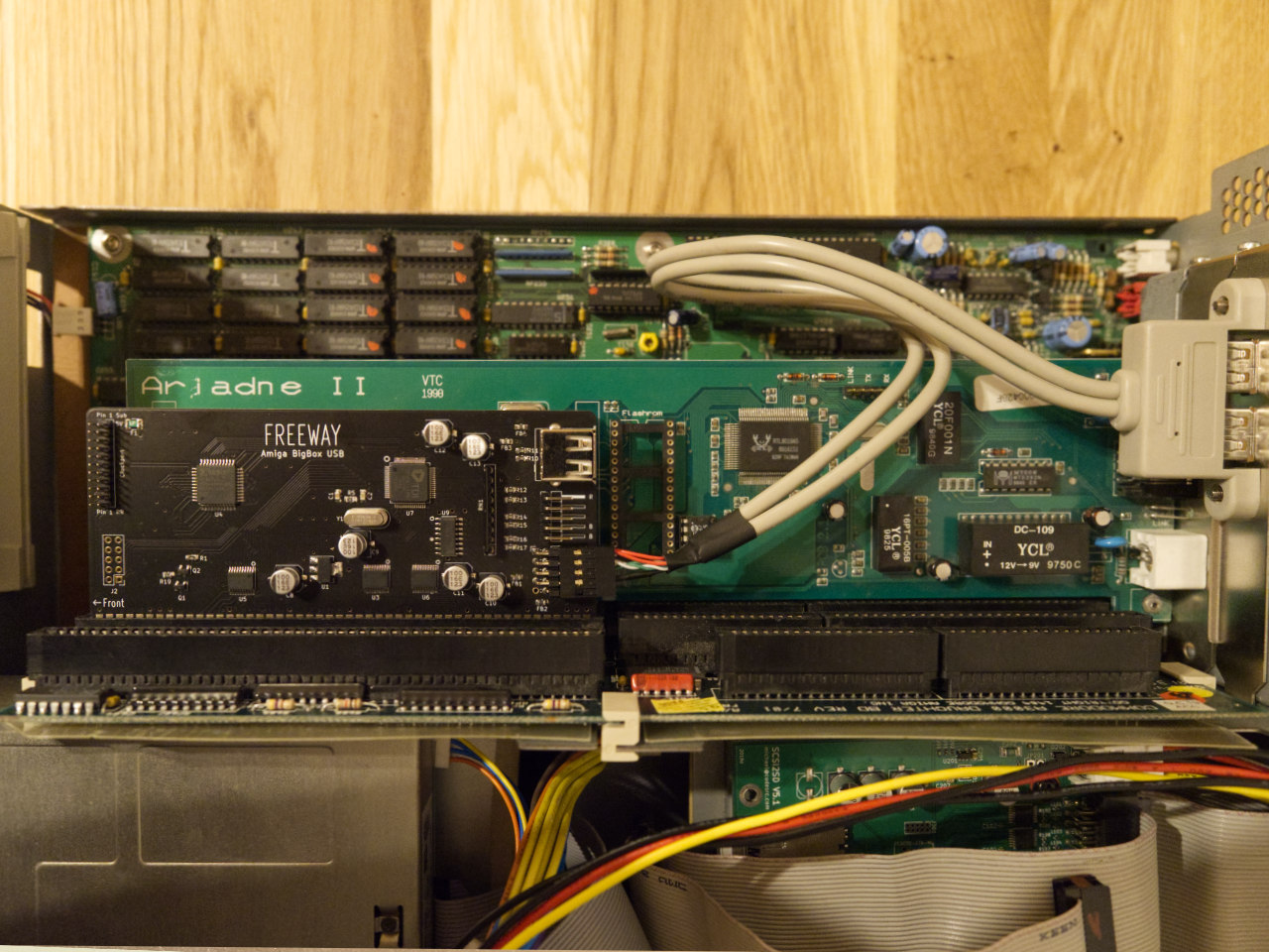 Die Freeway besitzt zwei USB-Ports von denen ich einen per Verlängerung auf die Vorderseite verlegt habe. Die Datenübertragung pendelt sich bei mir im Schnitt bei um die 880 Kb/Sec ein. Das ist zwar deutlich langsamer als bei den CF-Cards, aber ich habe beim Amiga ja keine Eile und die problemlose Handhabung wiegt die geringere Geschwindigkeit mehr als auf. Dazu unterstützt Poseidon nicht nur Massenspeicher sondern auch andere USB-Geräte. Ich werde da bei Gelegenheit mal etwas experimentieren.