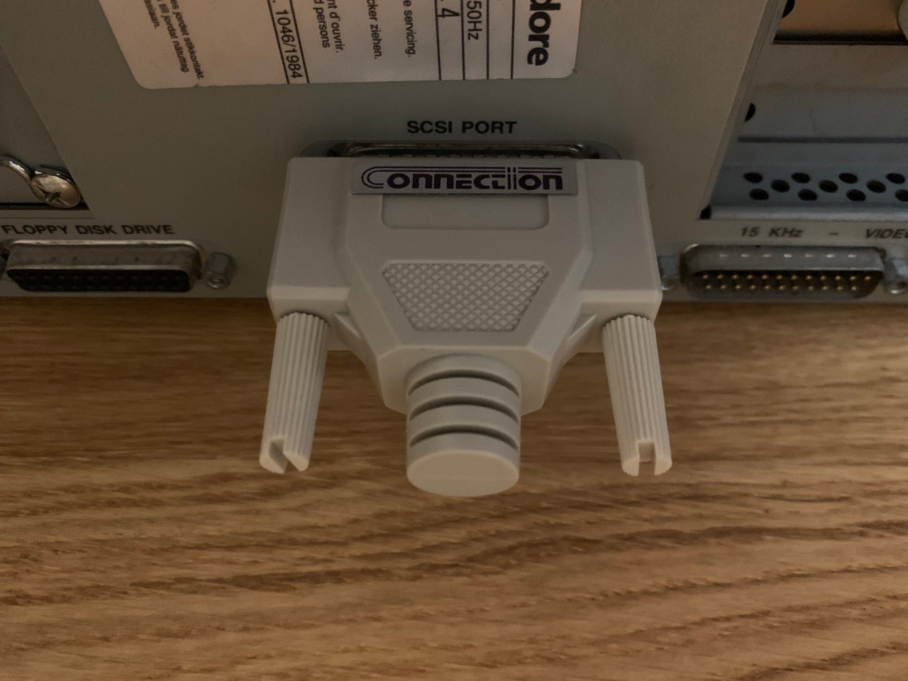 Für den internen SCSI-Bus habe ich einen externen, passiven Terminator besorgt damit der Bus korrekt versorgt ist. Hier muß der Anfang und das Ende der Kette jeweils terminiert werden. Den Anfang erledigt das SCSI2SD, aber am Ende fehlte die Terminierung. Es gab zwar so keine offensichtlichen Fehler, aber sicher ist sicher und die 5 EUR waren jetzt auch keine wahnsinnig große Ausgabe.