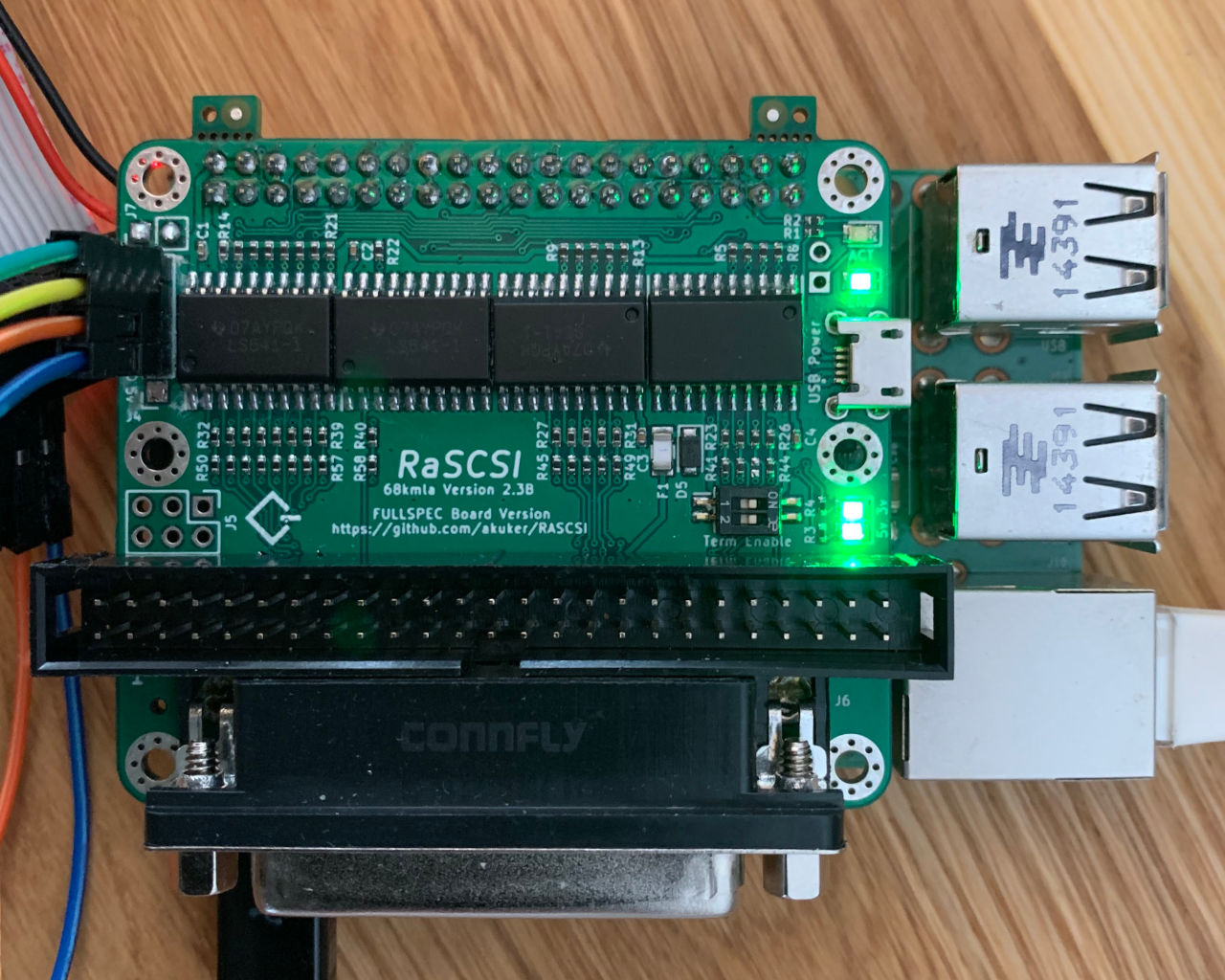 Meine Empfehlung ist RaSCSI in ein externen Gehäuse zu packen. So kann man es schon mal starten und warten bis es hoch fährt und spart sich einen Warmstart. Zudem kann man so Gebrauch vom flexiblen Medienmanagement machen das im Zusammenspiel mit mehreren Hostrechnern erst richtig zum Tragen kommt. Als interne Lösung ohne weitere Anbindung ist RaSCSI fast zu schade.