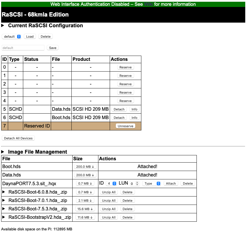 Die Standardinstallation besitzt keine Art von Sicherheit. Jeder der die IP-Adresse kennt (OLED-Display), der kann auch auf den Webserver zugreifen und Laufwerke löschen, usw. Optional kann man noch das Webinterface absichern, da ich aber auf Retrosystemen keine wichtigen Daten liegen habe, verzichte ich an der Stelle auf diese Option.