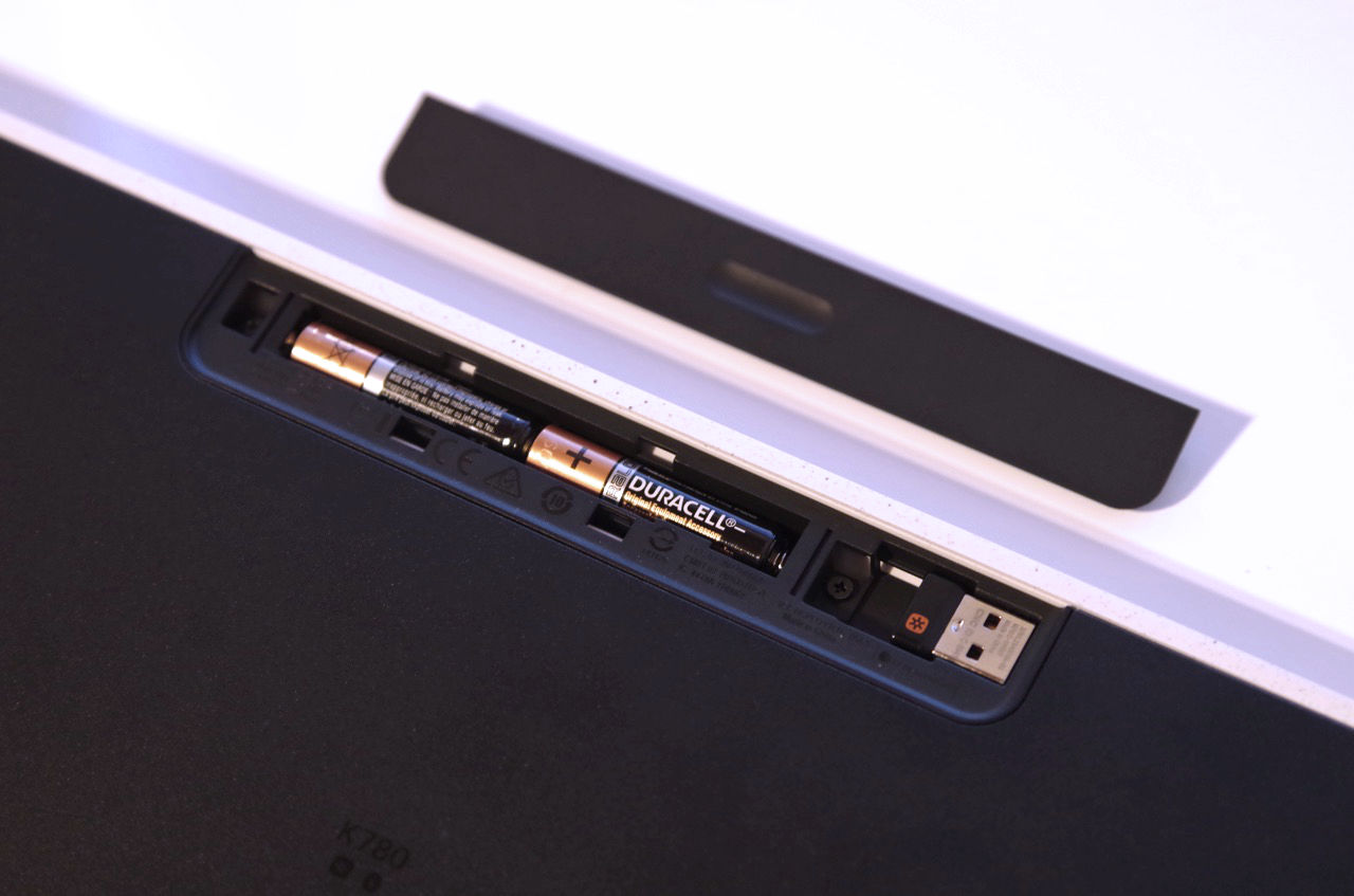 Die K780 wird über zwei AA-Batterien, die im Lieferumfang enthalten sind, angetrieben. Laut Logitech sollen die Batterien rund 2 Jahre halten. Die Tastatur besitzt an der rechten Seite einen gut erreichbaren Ein- und Ausschalter. Ich werde die Tastatur jedoch erst mal so testen ohne sie ständig ein- oder auszuschalten.
