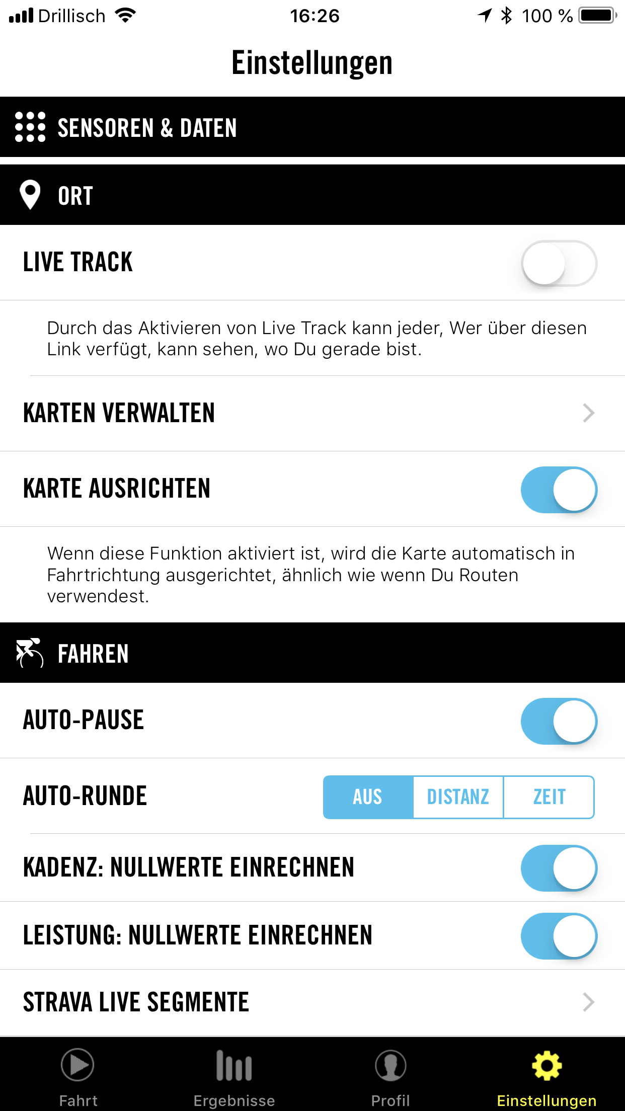 Hat man das alles so weit erledigt bietet sich die Verknüpfung weiterer Konten an. Bei mir wären das zum Beispiel Strava und Komoot. Damit hat man dann erst mal alle externen Konfigurationsmöglichkeiten erschlagen und kann sich an die individuelle, lokale Konfiguration des Bolt machen.