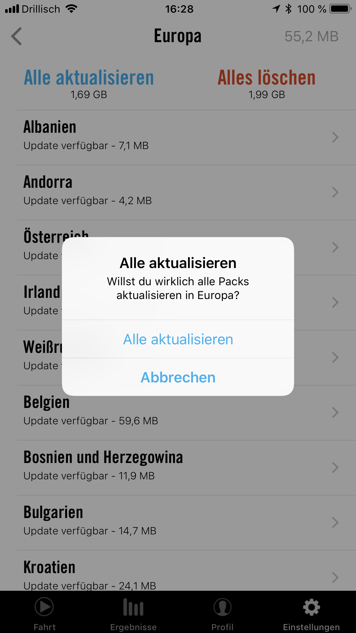 Als weitere Regionen stehen Afrika, Antartica und Asien zu Verfügung. Sollte man mal eine Karte löschen müssen weil das Updates mehr Platz brauchen als die installieren Karten, dann muß man bereits installierte Karten löschen. Das ist jedoch kein Problem da man alle Karten jederzeit wieder nachträglich installieren kann, es geht nichts verloren.