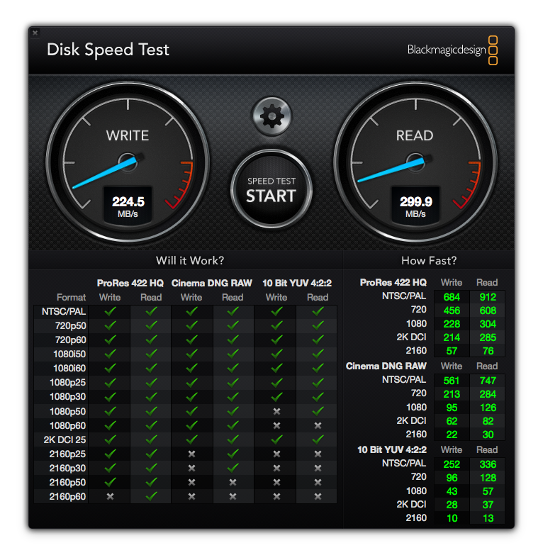 Leider ist die Leistung nicht so gut wie erwartet. Während man schon mit sehr günstigen USB3-Gehäusen für 10 EUR Übertragungsraten, lesend und schreibend, von über 400 MB/s erreicht, kommt das Envoy Pro nicht mal über 300 MB/s:
